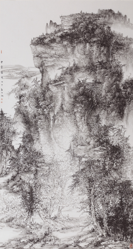 仁者樂山(中國畫) 136×68cm 2017年 劉罡
