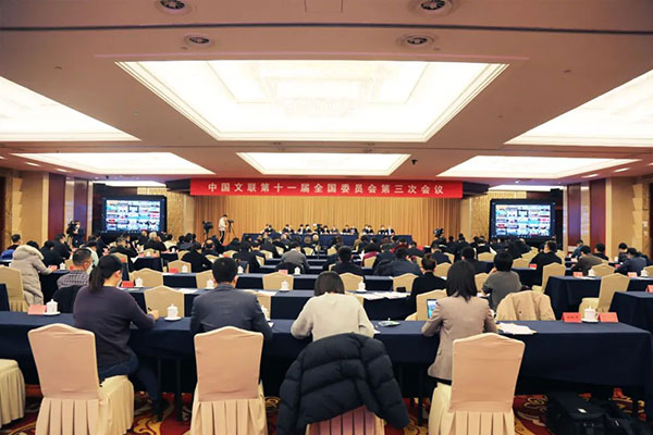 1月15日,中國文聯第十一屆全委會第三次會議以線上線下相結合的方式召開。圖為主會場現場。