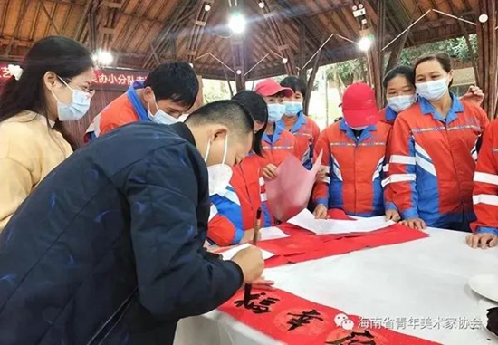 文化進(jìn)萬(wàn)家 | 海南省青年美術(shù)協(xié)會(huì)畫(huà)家為??诃h(huán)衛(wèi)工人義務(wù)寫(xiě)春聯(lián)送書(shū)畫(huà)送祝福 情暖環(huán)衛(wèi)工人