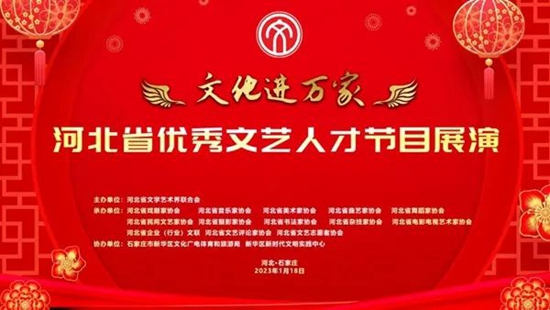 1月18日,河北省文聯(lián)在石家莊市新華區(qū)文體中心組織“文化進(jìn)萬(wàn)家——河北省文藝界優(yōu)秀文藝人才節(jié)目展演”,精心打造一臺(tái)充分展示文藝創(chuàng)新成果的精彩節(jié)目,面向群眾展示培養(yǎng)人才、推介作品的成效和成果。