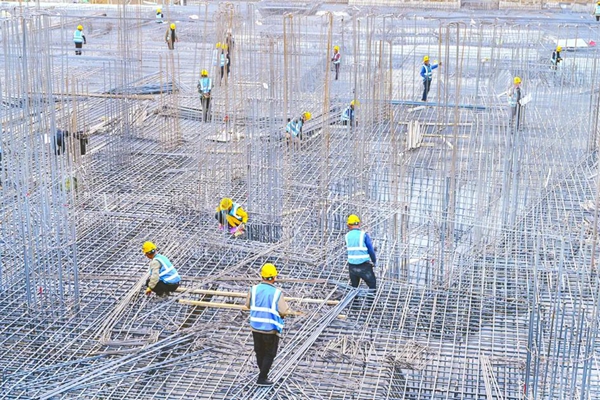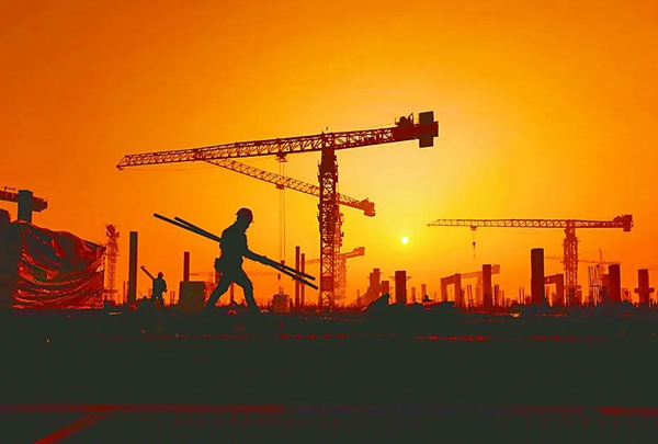 清晨,建設者們迎著朝陽,開始了一天的工作。 李輝 攝