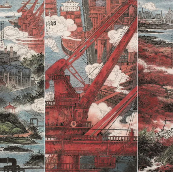 黃驊港建設(中國畫) 孫鴻鈞 楊貴玉