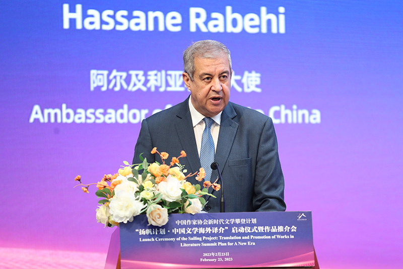 哈桑·拉貝希表示,今年恰逢中國國家主席習近平提出“一帶一路”倡議十周年。這一寶貴的倡議旨在促進各國民心相通,促進和平、繁榮與合作。文學翻譯具有十分重要的意義,相信“揚帆計劃·中國文學海外譯介”的啟動將以一系列豐富多彩而優秀的翻譯作品,加強各國人民之間的了解,帶來豐碩的合作成果和國際凝聚力。阿爾及利亞將繼續信任、鼓勵并對此提供相應的支持。作為今年北京國際圖書博覽會的主賓國,阿爾及利亞也將積極推動阿中合作,將更多的書籍和作品翻譯成中文,讓中國讀者更多地了解阿爾及利亞的文學和文化。
