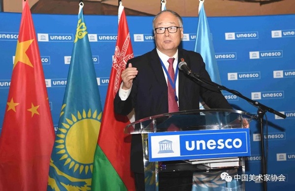4月6日,由中國、阿塞拜疆、哈薩克斯坦、蒙古、阿曼常駐聯合國教科文組織代表團同聯合國教科文組織聯合舉辦的慶祝絲綢之路旗艦項目35周年系列活動在巴黎成功舉辦。同期,中國美術家協會應中國常駐聯合國教科文組織代表團之邀,在巴黎聯合國教科文組織總部舉辦的“絲綢之路杰出藝術作品展”也舉行了隆重的推介儀式。聯合國教科文組織人文與社會科學助理總干事加布里埃拉·拉莫斯、中國常駐聯合國教科文組織代表楊進、各國常駐聯合國教科文組織代表團外交官、教科文組織秘書處官員以及在法研究機構、高校等近千人出席了包括展覽推介儀式在內的系列慶祝活動。