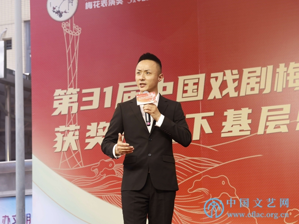 郝士超為大家帶來自己的拿手好戲《林沖夜奔》選段,引得現場叫好聲不斷。他表示將苦練多年的技藝奉獻給觀眾是梅花獎的精神所在,也希望今后抓住每一次的基層演出機會,讓自己家鄉的劇種能更加走近大眾生活。