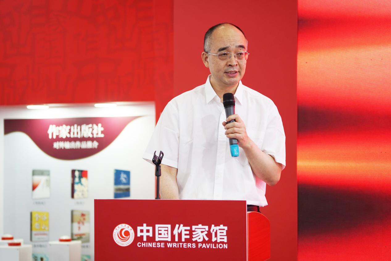吳義勤在代表中國作協(xié)的致辭中表示,黨的十八大以來,以習(xí)近平同志為核心的黨中央對文藝事業(yè)高度重視,給予殷切關(guān)懷,作出了一系列重要論述和指示批示,在新的歷史方位上為新時(shí)代文學(xué)高質(zhì)量發(fā)展指明了前進(jìn)方向、提供了根本遵循。中國作協(xié)團(tuán)結(jié)引領(lǐng)廣大作家以高度的歷史自覺和文化自信,創(chuàng)作出一大批反映時(shí)代歷史巨變、展現(xiàn)人民昂揚(yáng)風(fēng)貌、充盈人民精神生活的優(yōu)秀作品,譜寫了新時(shí)代文學(xué)的嶄新篇章。站在新的歷史起點(diǎn),我們舉辦中國作家館的活動,既是對新時(shí)代十年的回顧總結(jié),更是踏上新征程的出發(fā)動員。當(dāng)前,中國文學(xué)界正在深入學(xué)習(xí)貫徹黨的二十大精神、積極開展主題教育實(shí)踐、認(rèn)真學(xué)習(xí)領(lǐng)會習(xí)近平總書記在文化傳承發(fā)展座談會上的重要講話精神,我們要以習(xí)近平總書記關(guān)于文藝工作的一系列重要論述和指示批示精神為指引,堅(jiān)定文化自信、文學(xué)自信,主動擔(dān)負(fù)新的文化使命,為建設(shè)中華民族現(xiàn)代文明和社會主義文化強(qiáng)國作出文學(xué)貢獻(xiàn),彰顯新時(shí)代文學(xué)的宏偉力量。