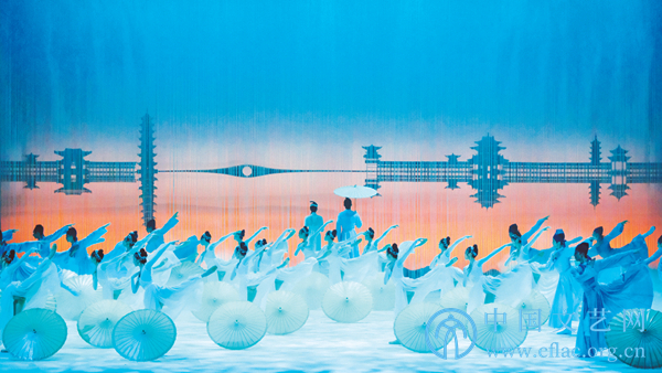 該劇的第六、第七、第八場(chǎng)分別叫《還魂》《對(duì)峙》和《明心》,而這顯然是對(duì)《端陽(yáng)》之強(qiáng)烈戲劇沖突的“反轉(zhuǎn)”以及對(duì)古老傳奇的重塑。用主創(chuàng)們?cè)谕莆闹械脑拋?lái)說(shuō),是“傳統(tǒng)的故事框架,對(duì)應(yīng)的是現(xiàn)代的意識(shí)和表現(xiàn)手法……突破原有愛(ài)情戲的‘感恩’色彩,對(duì)經(jīng)典情節(jié)‘反轉(zhuǎn)’處理,融入現(xiàn)代‘敢于擔(dān)當(dāng)’的精神風(fēng)貌……”對(duì)于這種“反轉(zhuǎn)”的表現(xiàn),主創(chuàng)們更是必須沿著“鵝毛大雪”的多媒體投影之路走下去了——在這種時(shí)下被稱為“跨界融合”的視像表現(xiàn)中,觀眾看見(jiàn)的是“滔天涌浪”和涌浪中青春煥發(fā)的許仙、白娘子和小青,他們仿佛經(jīng)歷著又一次“驚蟄”的洗禮;而稍后出現(xiàn)的法海,仿佛以打坐的蒲團(tuán)為舟,在涌浪翻卷的渾濁中隨波逐流,似乎在醒悟什么才是人生的“苦海”?!此時(shí),一支如夢(mèng)如幻的歌仿佛從天際飄來(lái):“人生匆匆始終忘不了,那年西湖的春雨濕了斷橋;人生漫漫始終忘不了,雨過(guò)天晴彩虹現(xiàn)回眸笑。一生一世只為了尋找,兩顆心長(zhǎng)久離散沒(méi)著沒(méi)落;半夢(mèng)半醒花落知多少,此情千古似海深誰(shuí)知道……”雖然在劇終時(shí)主創(chuàng)們用字幕投出“唯有落幕才能看清人生的劇本”來(lái)標(biāo)示自己的理念;但我覺(jué)得場(chǎng)刊上一段“用足尖為世界打開(kāi)一封中國(guó)式情書(shū)”的文字才是“點(diǎn)睛”之筆,是這部追求新、奇、美、趣、炫的芭蕾舞劇的題旨所在!
