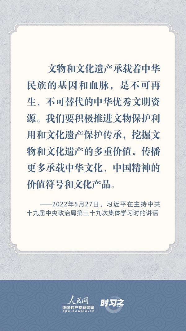 文物承載燦爛文明,傳承歷史文化,維系民族精神。習近平總書記站在中華民族和中華文明永續傳承的戰略高度,不斷強調保護傳承中華優秀傳統文化,為增強文化自信、激發中華優秀傳統文化的生機與活力注入了強大精神動力。