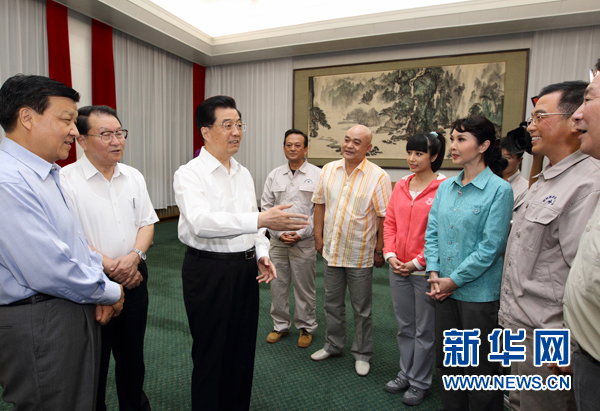 胡錦濤在觀看話劇《郭明義》并接見劇組主創人員時勉勵文藝工作者