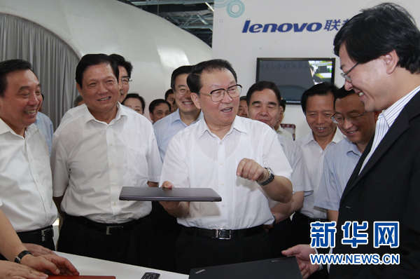 李長春十分關心北京推進自主創新情況。他來到中關村國家自主創新示范區展示中心,觀看園區科技創新成果展示。在聯想集團公司、神州數碼控股有限公司、漢王科技公司等企業展臺,李長春勉勵他們加大研發投入,盡快突破一批填補國內空白的核心技術,搶占行業發展制高點。在仁創科技集團有限公司展臺,李長春對企業通過自主研發積極發展沙產業的實踐表示贊許。京東方科技集團公司自主建設了8.5代TFT-LCD生產線,改寫了我國大尺寸液晶屏完全依賴進口的歷史。李長春高度贊揚企業取得的創新成果,希望他們始終瞄準世界科技發展前沿,努力做到生產一代、研制一代、預研一代、儲備一代,不斷增強核心競爭力,早日躋身世界一流企業行列。