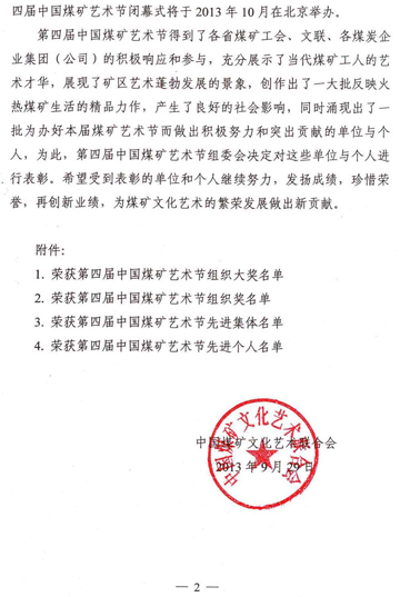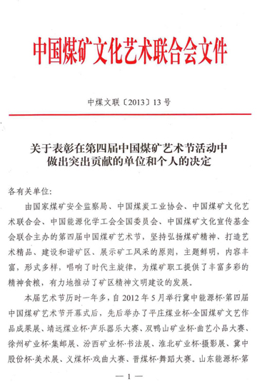 關于表彰在第四屆煤礦藝術節(jié)活動中做出突出貢獻的單位和個人的決定
