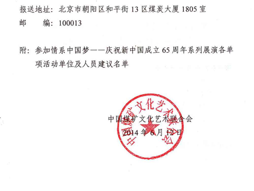 關于組織煤炭系統職工參加情系中國夢——慶祝新中國成立65周年系列展演活動的通知
