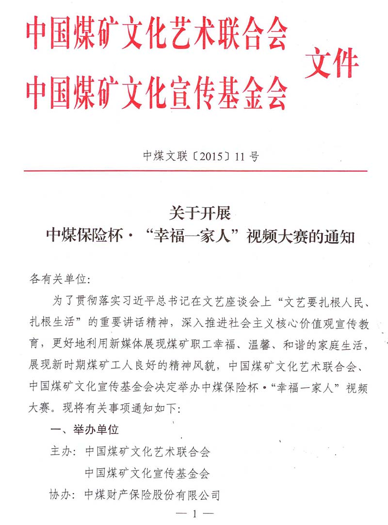 關(guān)于開展中煤保險杯·“幸福一家人”視頻大賽的通知 來源: 作者: 時間:2015-06-12 【字體:小 大】 附件:中煤保險杯·“幸福一家人”視頻大賽參賽登記表 智能標簽: 中煤保險 視頻大賽 相關(guān)內(nèi)容 分享到: 【打印正文】