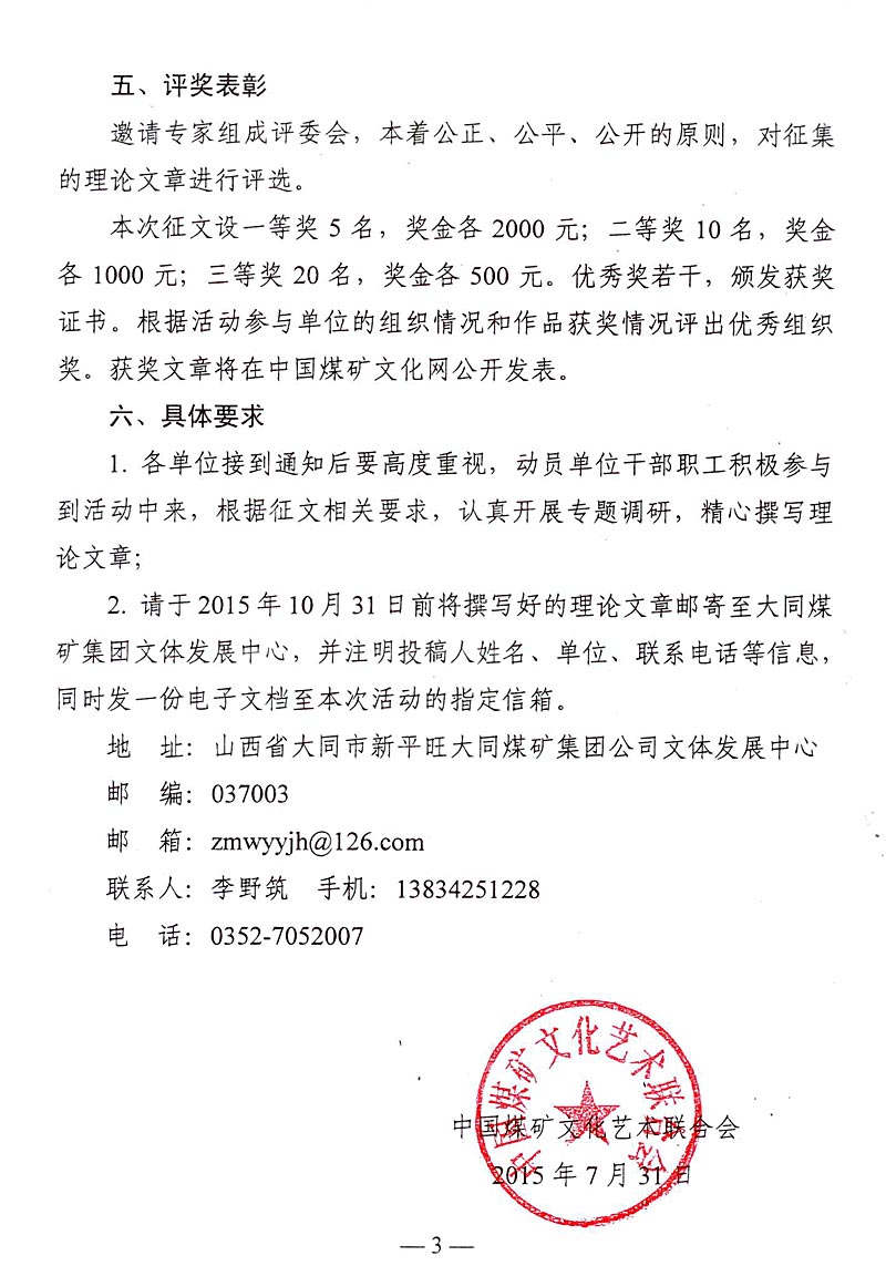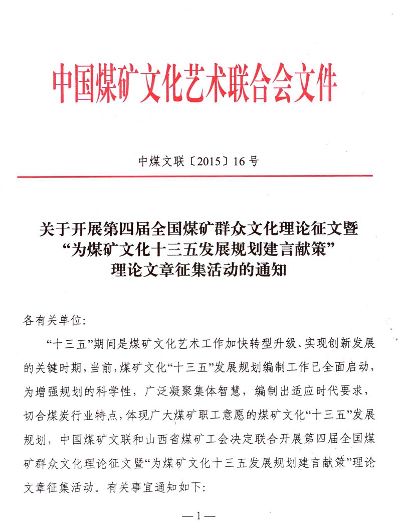 關于開展第四屆全國煤礦群眾文化理論征文暨“為煤礦文化十三五發展規劃建言獻策”理論文章征集活動的通知