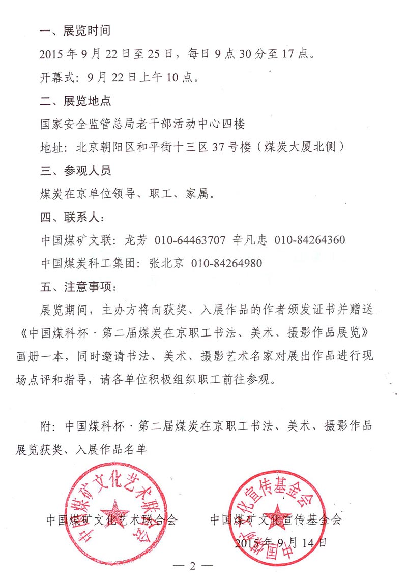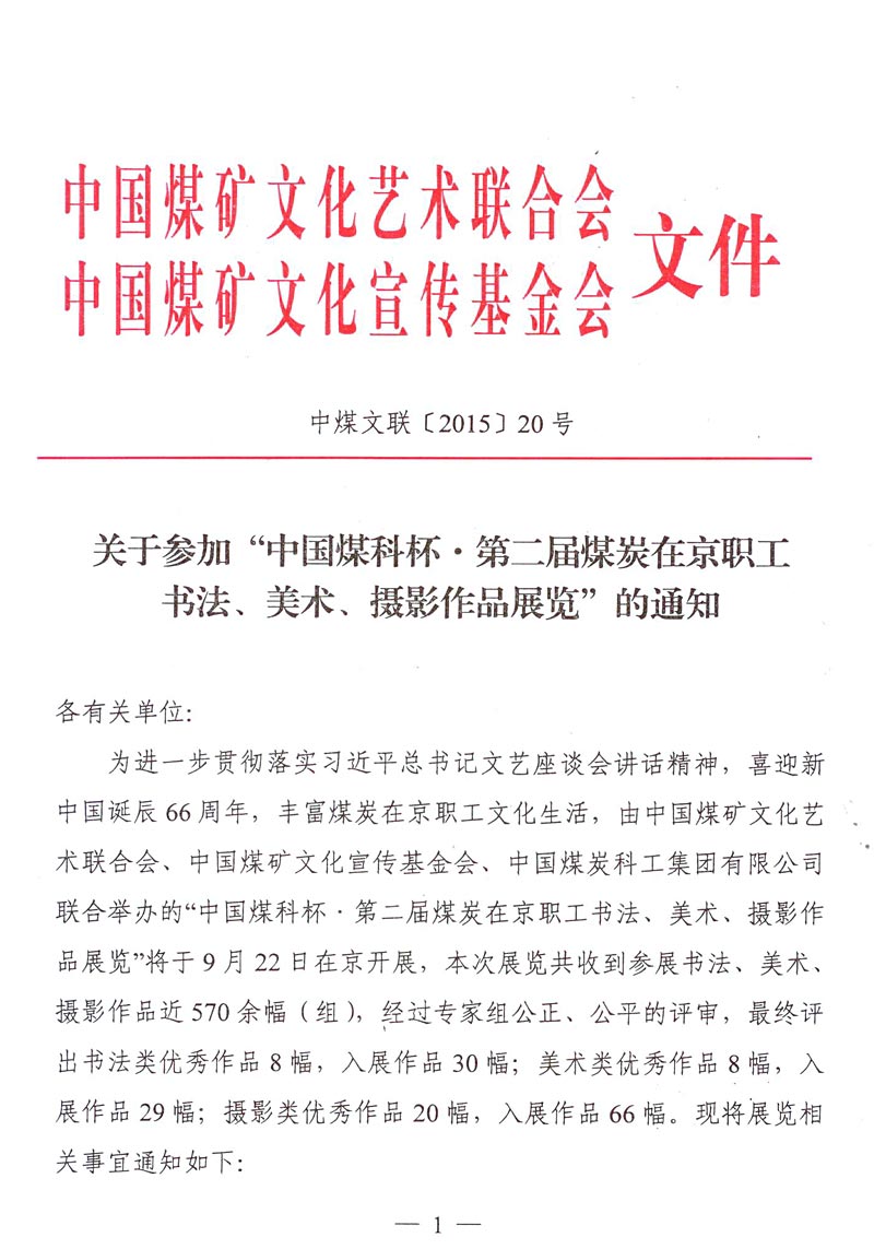 關于參加“中國煤科杯·第二屆煤炭在京職工書法、美術、攝影作品展覽”的通知 來源: 作者: 時間:2015-09-15 【字體:小 大】 附:中國煤科杯·第二屆煤炭在京職工書法、美術、攝影作品展覽獲獎、入展作品名單 智能標簽: 中國煤科 煤炭在京職工 相關內容 分享到: 【打印正文】