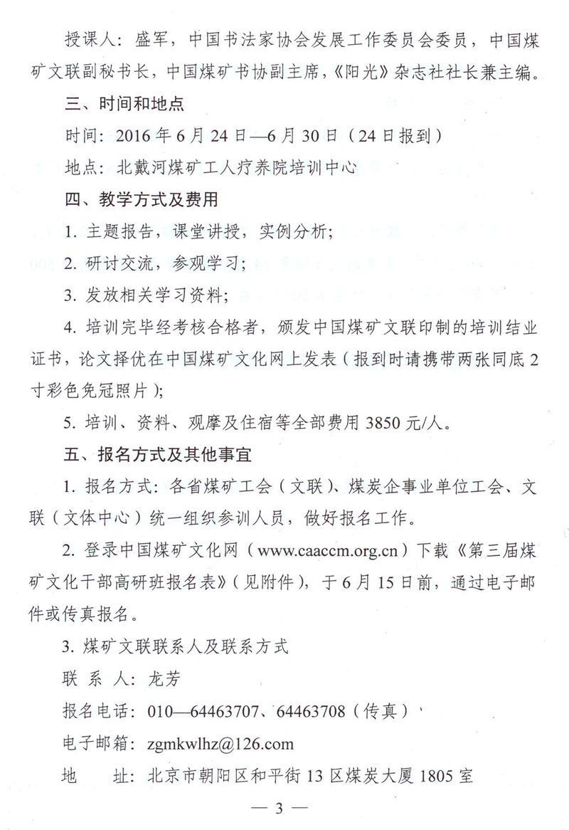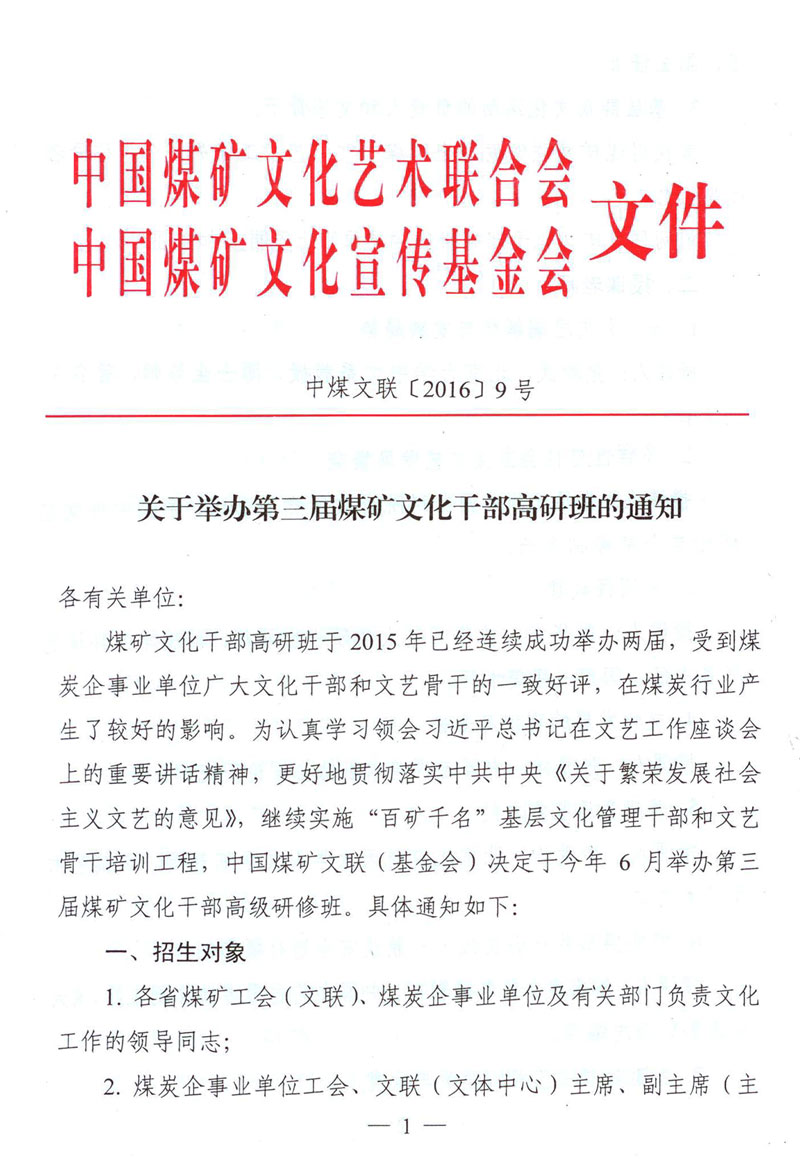 關于舉辦第三屆煤礦文化干部高研班的通知