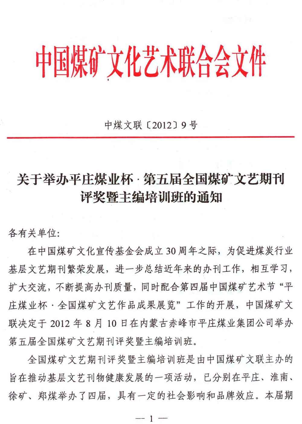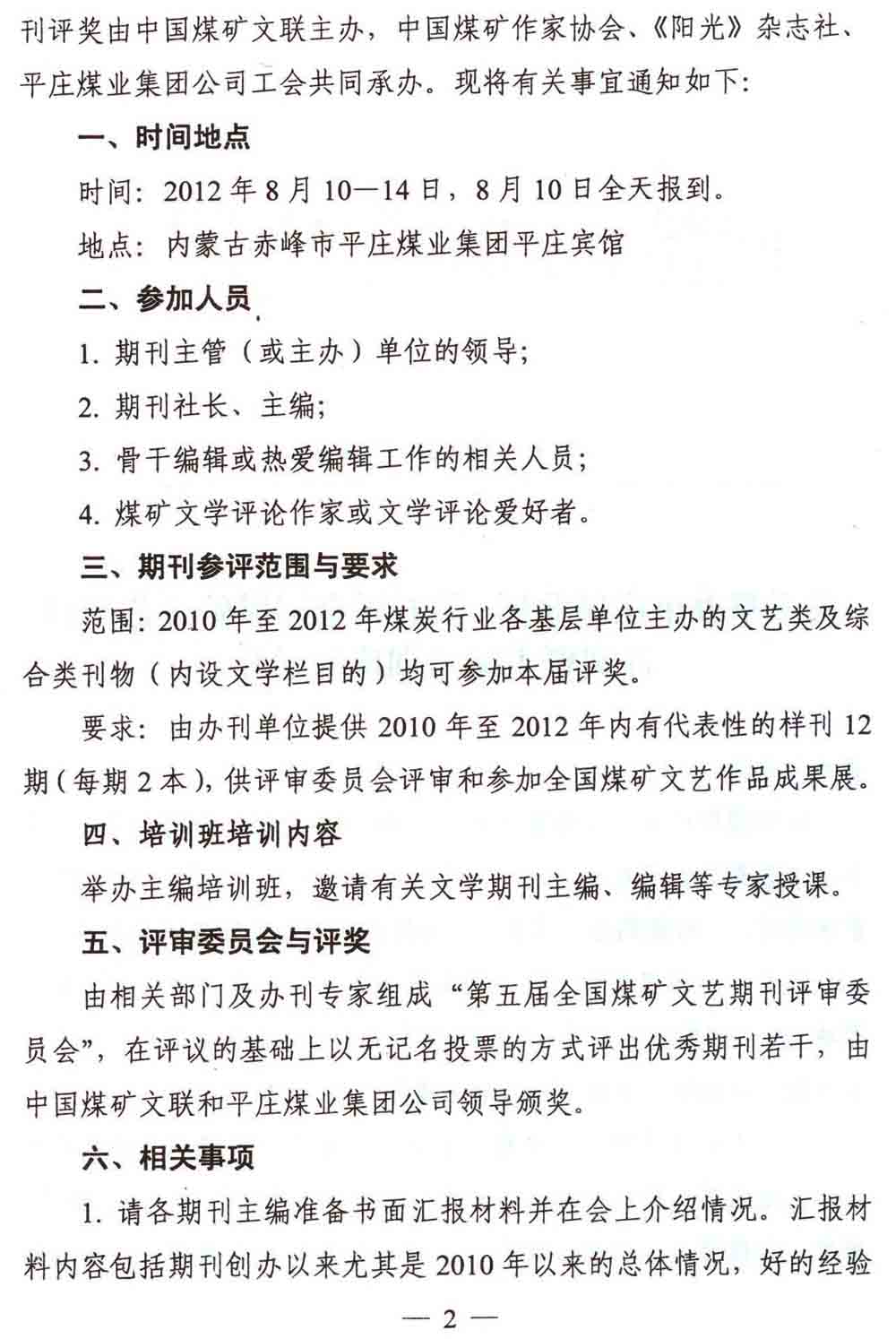關(guān)于舉辦平莊煤業(yè)杯·第五屆全國煤礦文藝期刊評獎暨主編培訓班的通知