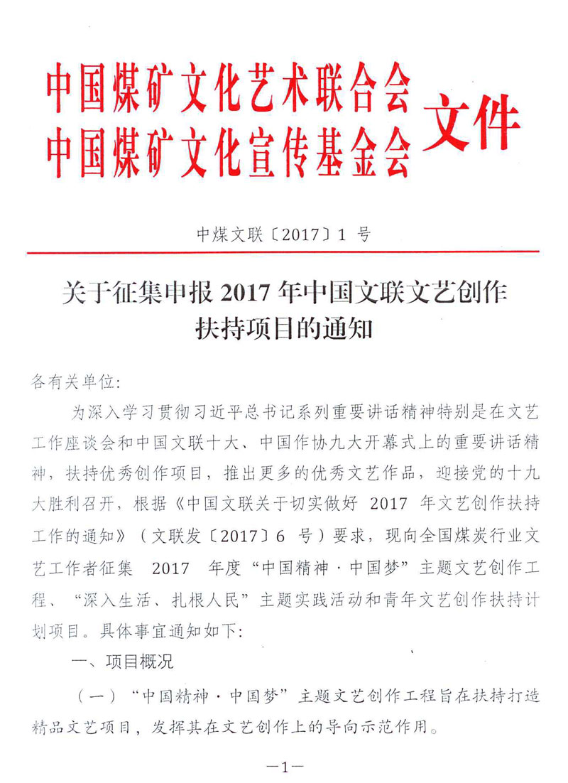 關(guān)于征集申報(bào)2017年中國文聯(lián)文藝創(chuàng)作扶持項(xiàng)目的通知