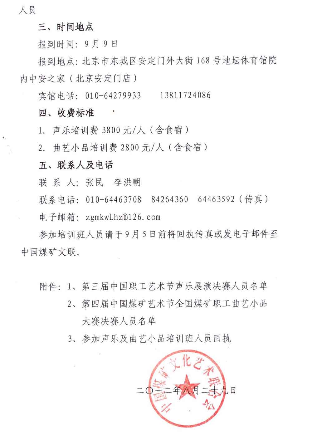 關于舉辦全國煤炭系統聲樂及曲藝小品培訓班的通知