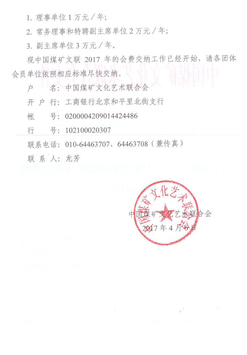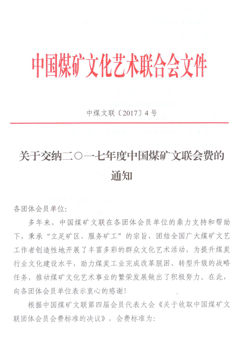 關于交納二○一七年度中國煤礦文聯會費的通知