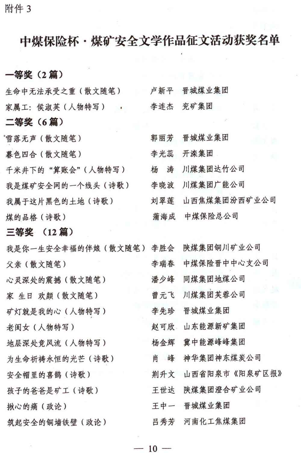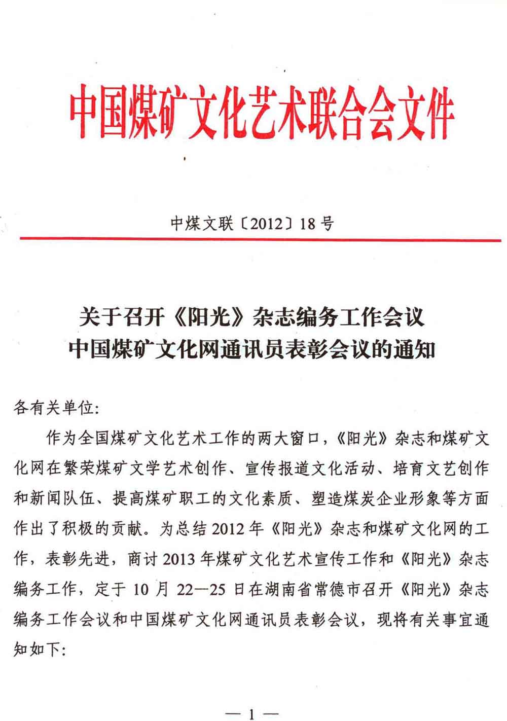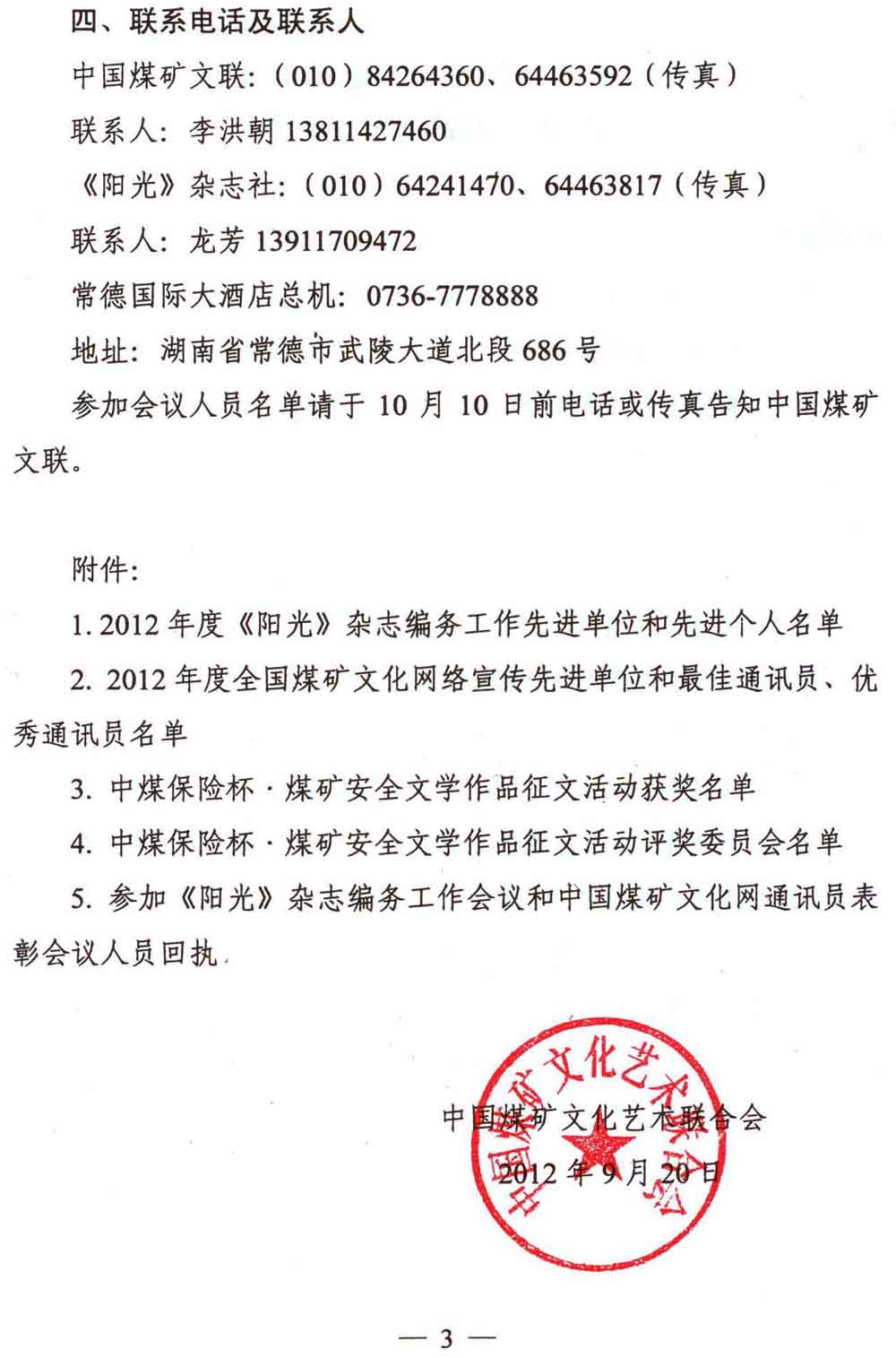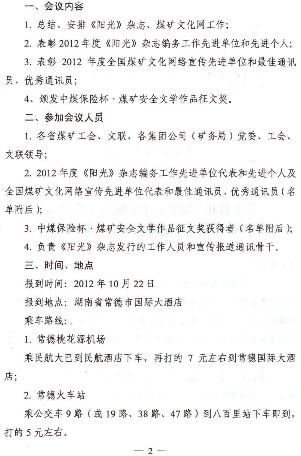 關于召開《陽光》雜志編務工作會議暨中國煤礦文化網通訊員表彰會議的通知 來源:中國煤礦文化網 作者:煤礦文聯 時間:2012-09-21 【字體:小 大】 附件5:參加《陽光》雜志編務工作會議和中國煤礦文化網通訊員表彰會議人員回執 分享到: 【打印正文】