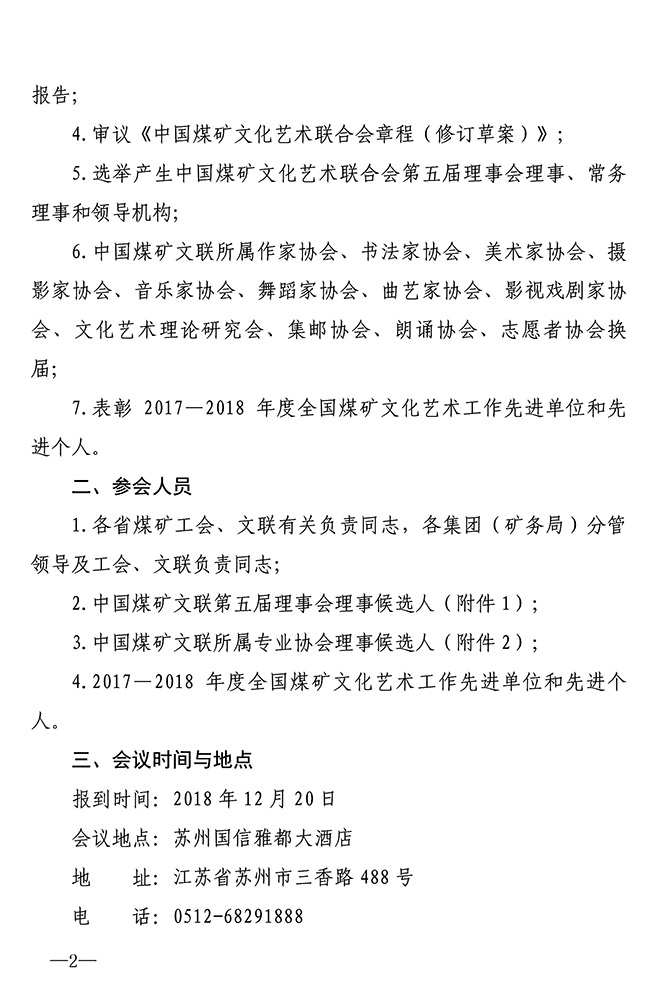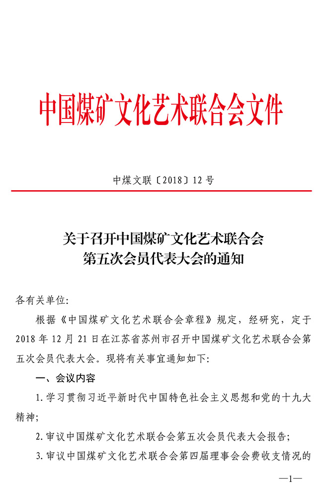 關(guān)于召開中國煤礦文化藝術(shù)聯(lián)合會(huì)第五次會(huì)員代表大會(huì)的通知 來源:中國煤礦文聯(lián) 作者: 時(shí)間:2018-12-07 【字體:小 大】 關(guān)于召開中國煤礦文化藝術(shù)聯(lián)合會(huì)第五次會(huì)員代表大會(huì)的通知(PDF版)附件:1.中國煤礦文聯(lián)第五屆理事會(huì)理事候選人建議名單2.中國煤礦文聯(lián)所屬專業(yè)協(xié)會(huì)理事候選人建議名單3.中國煤礦文聯(lián)理事變動(dòng)信息登記表4.中國煤礦文聯(lián)所屬專業(yè)協(xié)會(huì)理事變動(dòng)信息登記表5.會(huì)議回執(zhí) 智能標(biāo)簽: 中國煤礦文聯(lián) 相關(guān)內(nèi)容 分享到: 【打印正文】