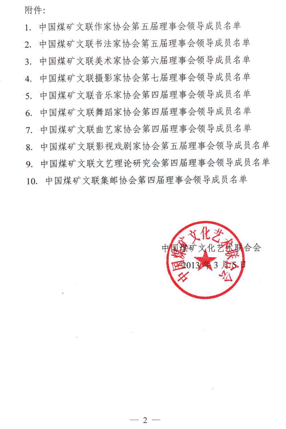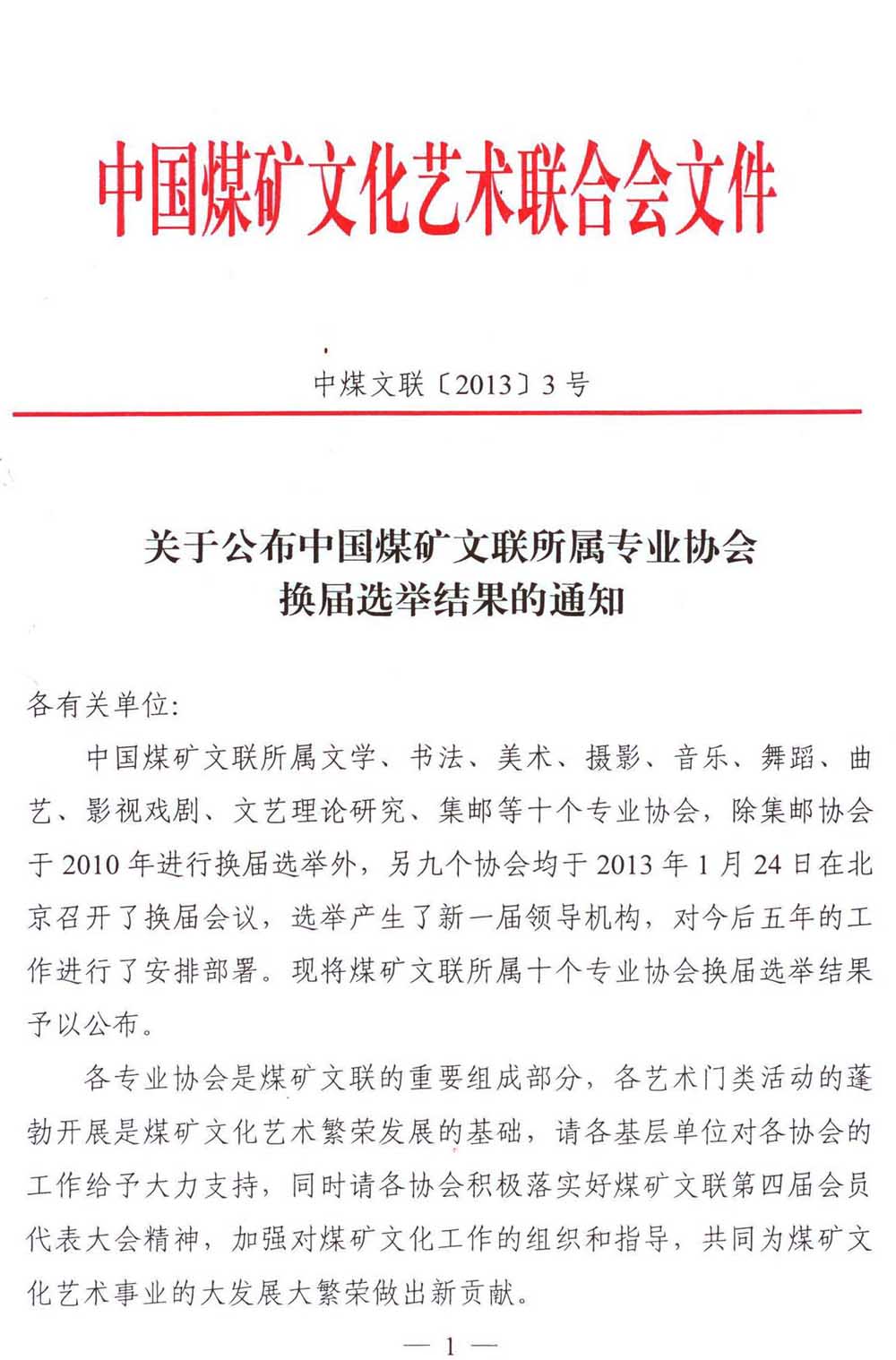 關于公布中國煤礦文聯所屬專業協會換屆選舉結果的通知