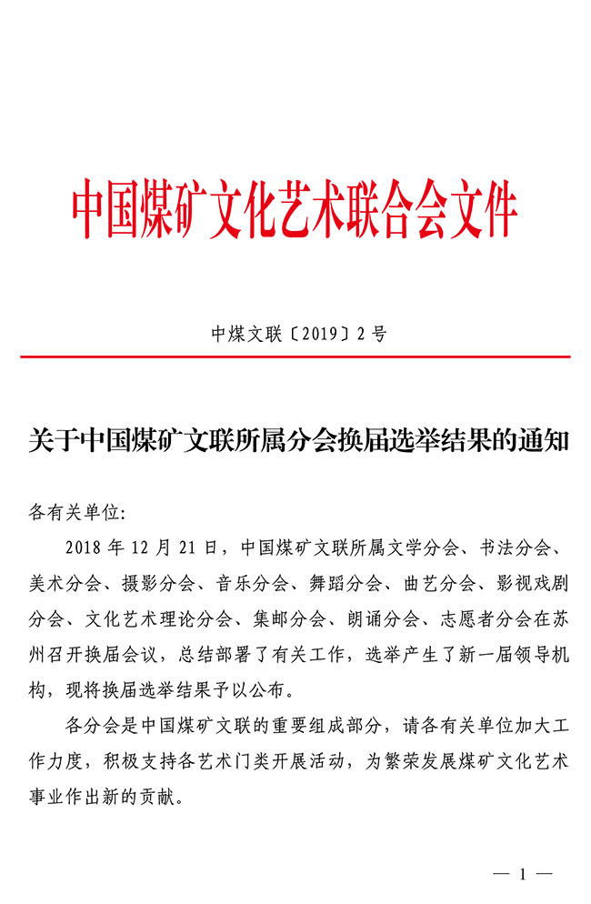 關于中國煤礦文聯所屬分會換屆選舉結果的通知 來源:中國煤礦文聯 作者: 時間:2019-02-01 【字體:小 大】 關于中國煤礦文聯所屬分會換屆選舉結果的通知(PDF版) 智能標簽: 中國煤礦文聯 相關內容 分享到: 【打印正文】