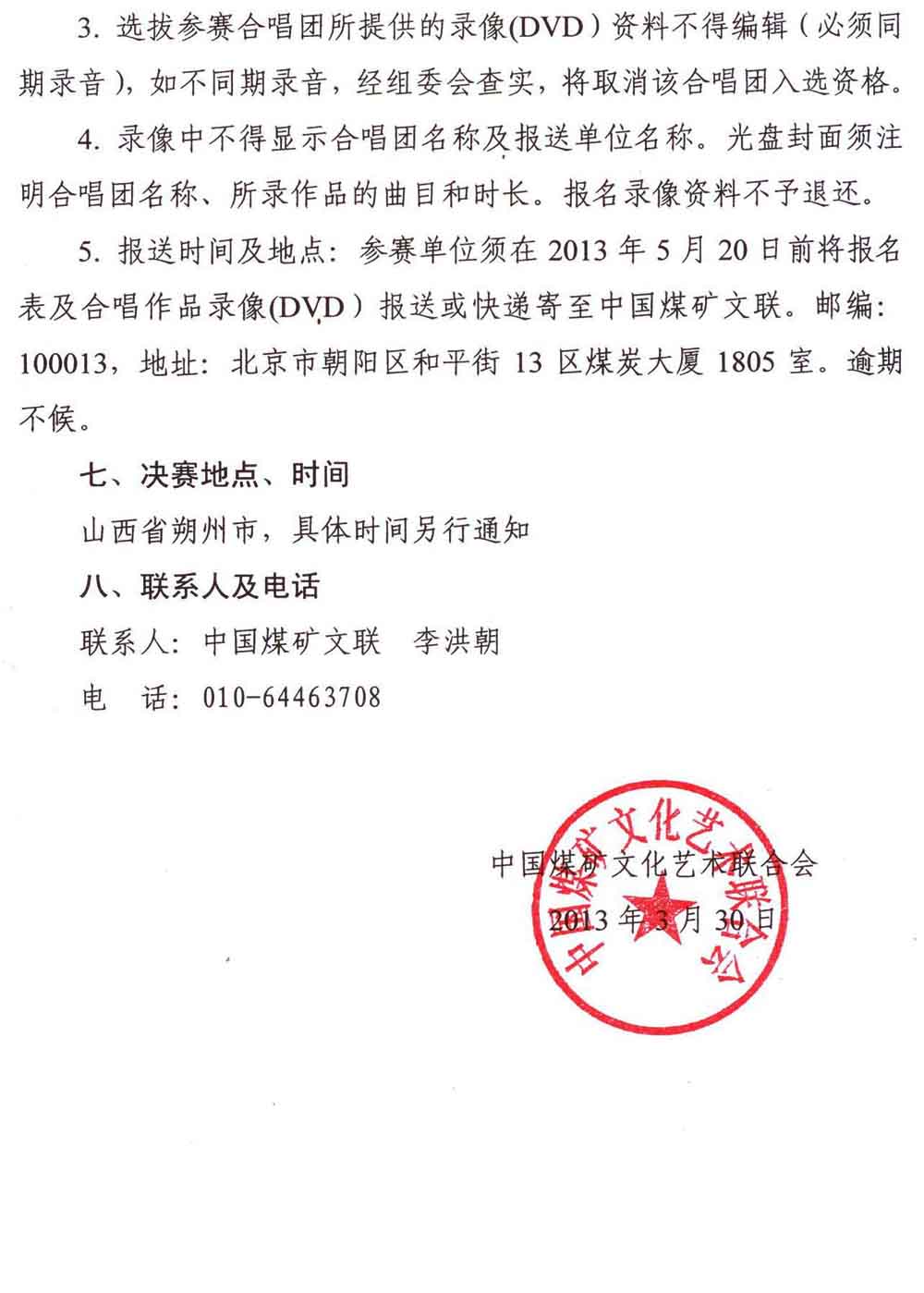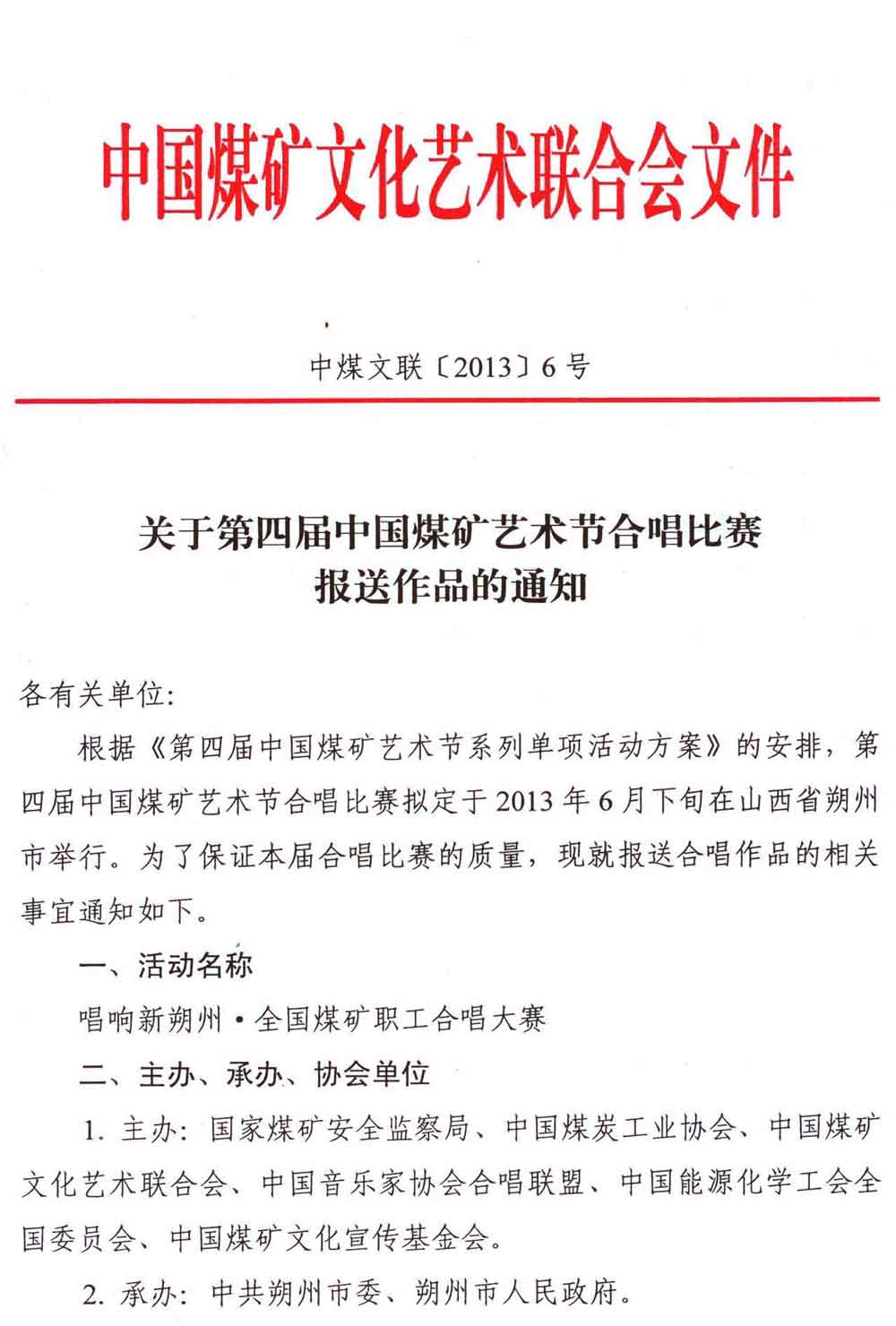 關于第四屆中國煤礦藝術節合唱比賽報送作品的通知