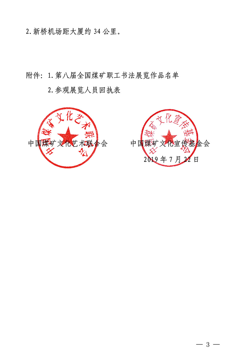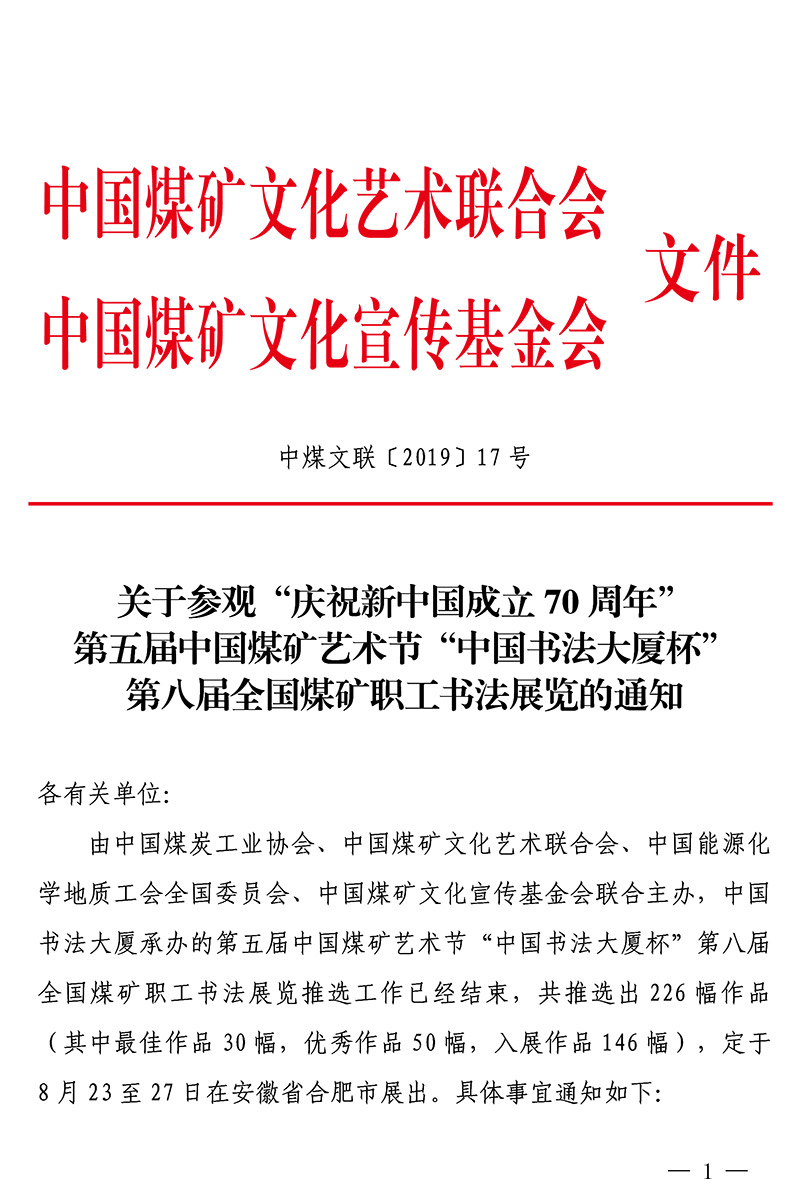 關于參觀第八屆全國煤礦職工書法展覽的通知 來源:中國煤礦文聯 作者: 時間:2019-07-26 【字體:小 大】 附件:· 關于參觀“慶祝新中國成立70周年”第五屆中國煤礦藝術節“中國書法大廈杯”第八屆全國煤礦職工書法展覽的通知(PDF版,含附件1)· 參觀展覽人員回執表(附件2) 智能標簽: 中國煤礦文聯 中國煤礦藝術節 相關內容 分享到: 【打印正文】