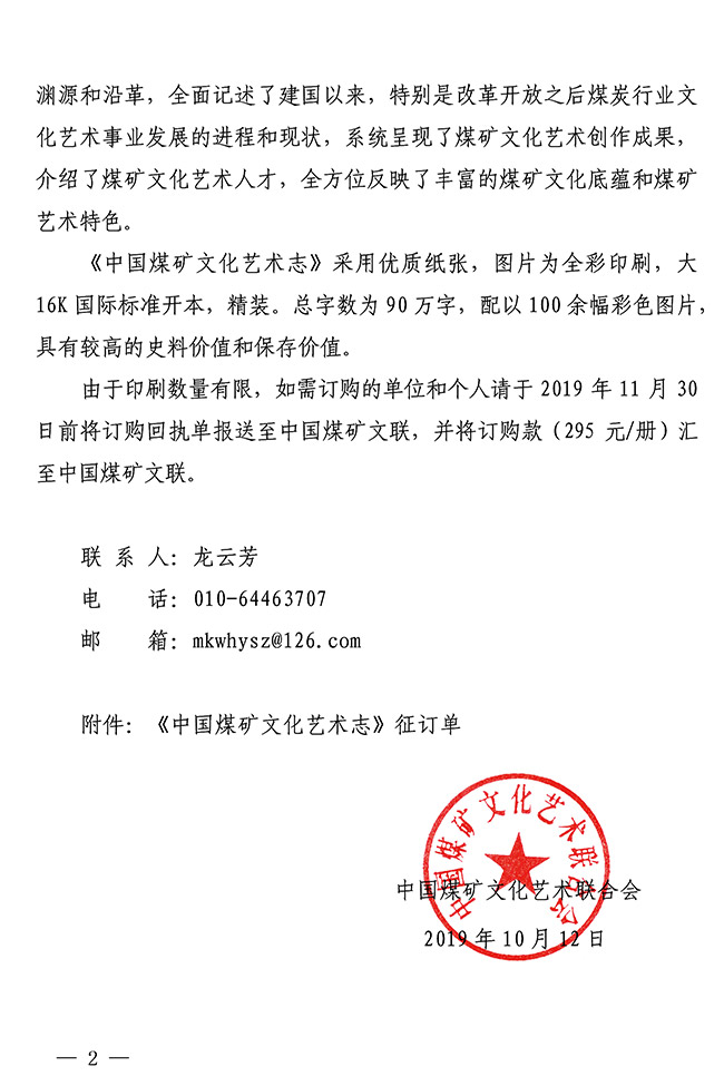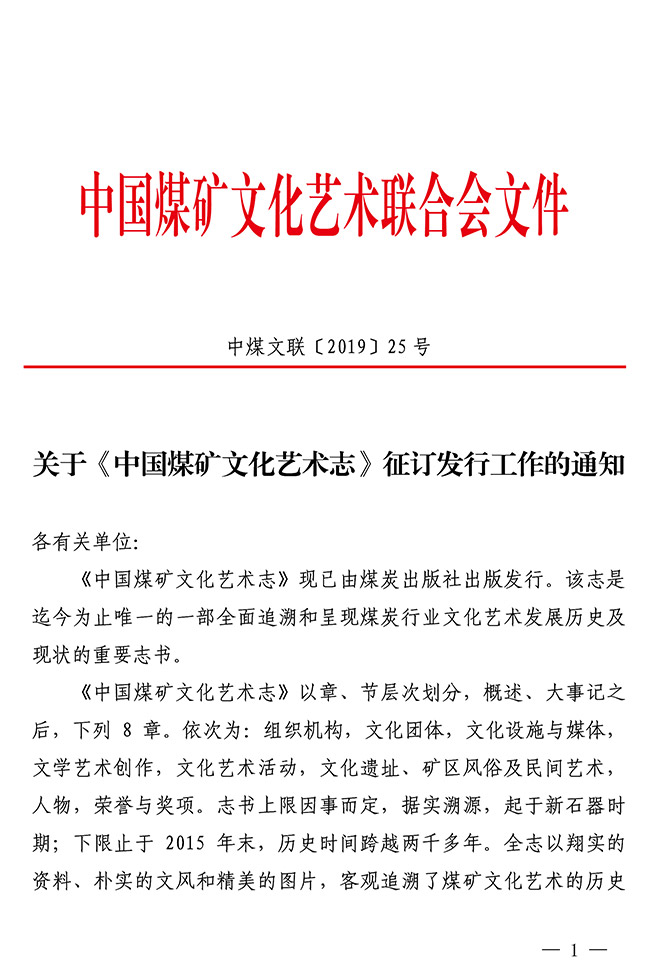 關于《中國煤礦文化藝術志》征訂發行工作的通知