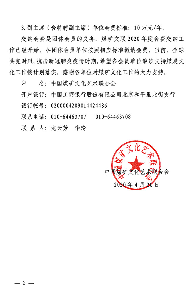 關于交納二○二○年度會費的通知
