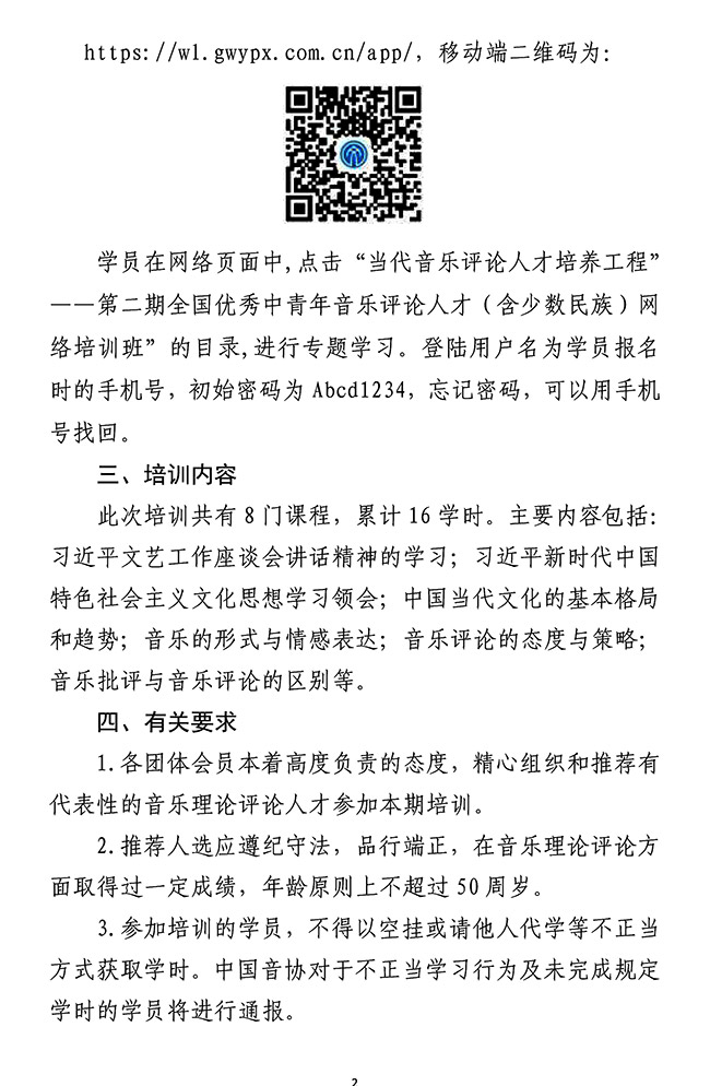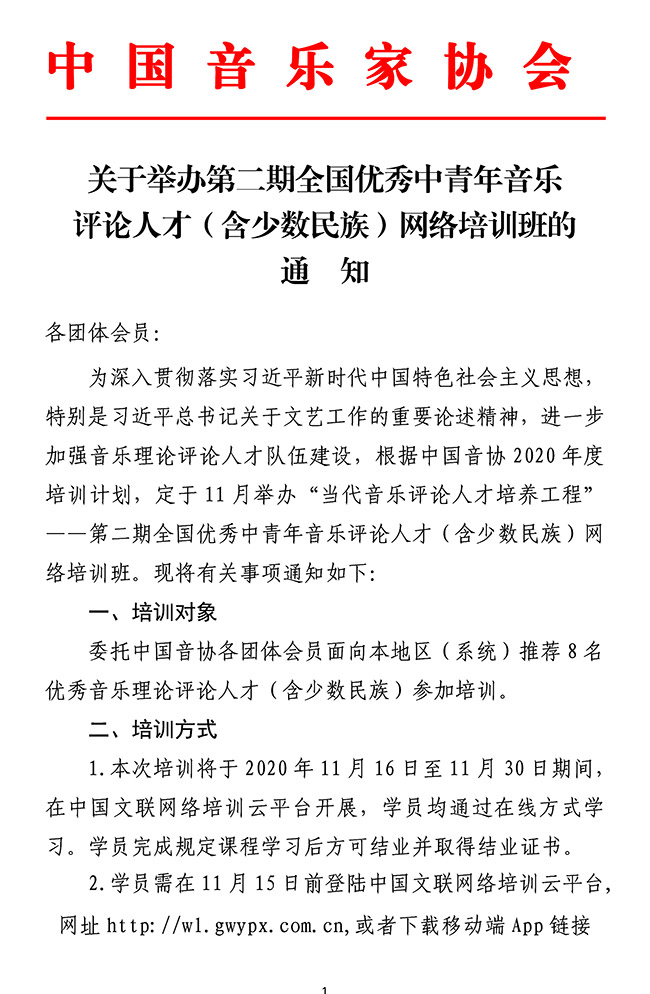 中國(guó)音協(xié):關(guān)于舉辦第二期全國(guó)優(yōu)秀中青年音樂評(píng)論人才(含少數(shù)民族)網(wǎng)絡(luò)培訓(xùn)班的通知