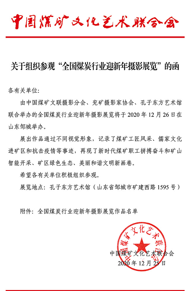 關于組織參觀“全國煤炭行業迎新年攝影展覽”的函