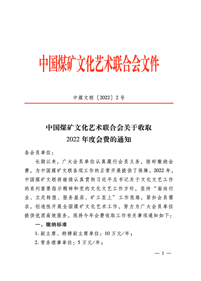 中國煤礦文化藝術聯合會關于收取2022年度會費的通知