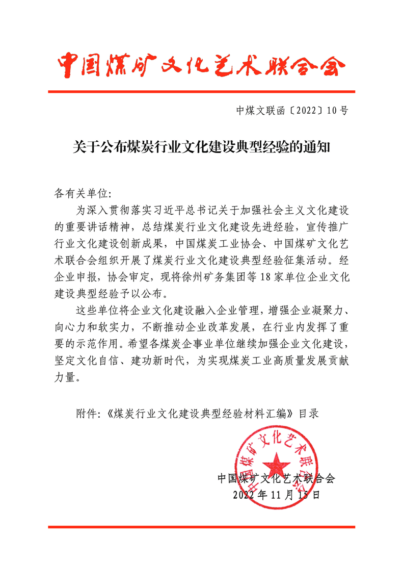 關于公布煤炭行業文化建設典型經驗的通知