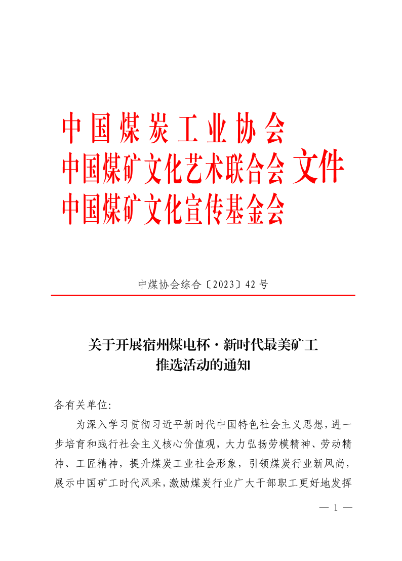 關于開展宿州煤電杯·新時代最美礦工推選活動的通知