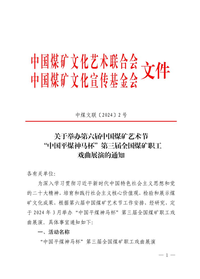 關(guān)于舉辦第六屆中國煤礦藝術(shù)節(jié)“中國平煤神馬杯”第三屆全國煤礦職工戲曲展演的通知