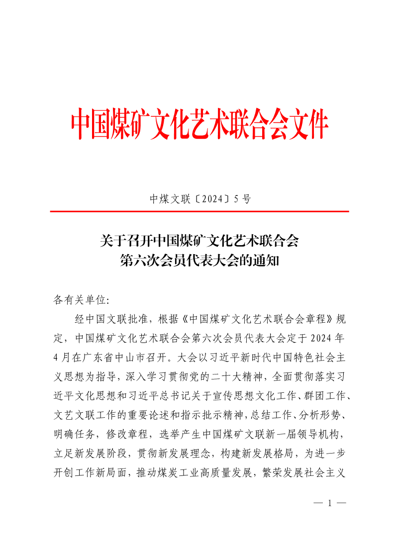 關于召開中國煤礦文化藝術聯合會第六次會員代表大會的通知