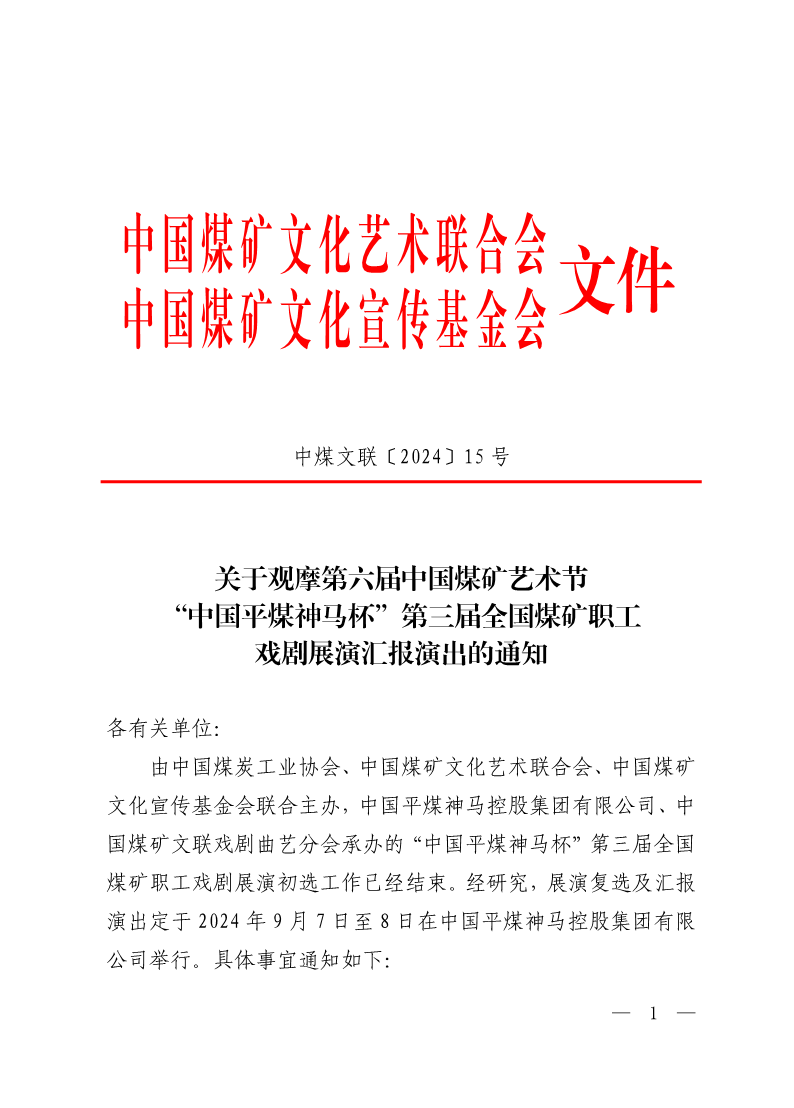 關(guān)于觀摩第六屆中國煤礦藝術(shù)節(jié)“中國平煤神馬杯”第三屆全國煤礦職工戲劇展演匯報演出的通知