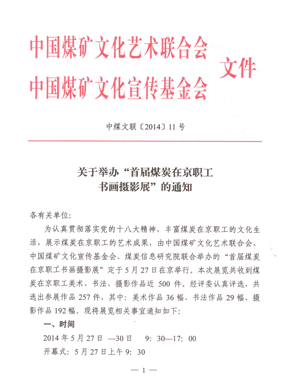 關(guān)于舉辦“首屆煤炭在京職工書畫攝影展”的通知