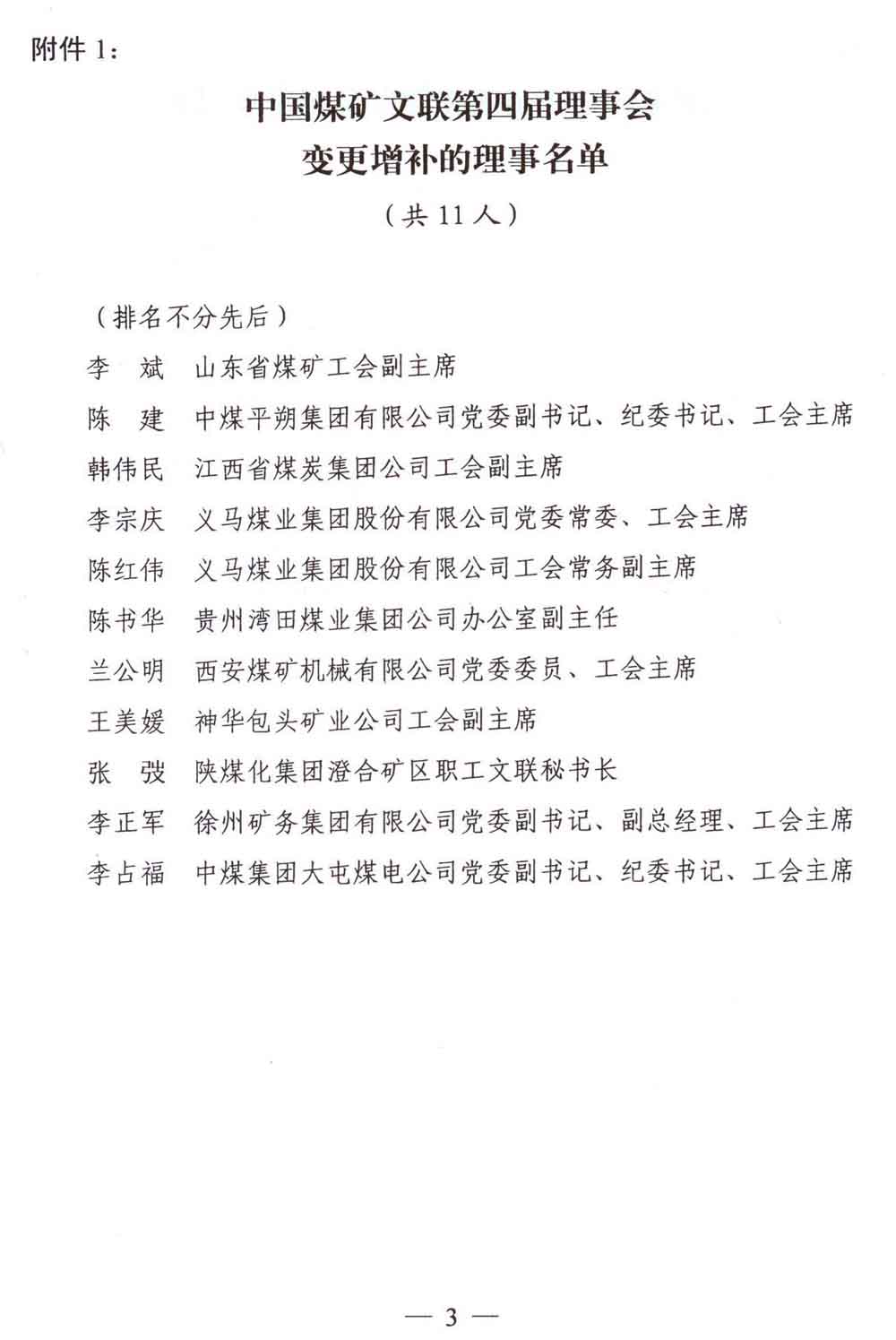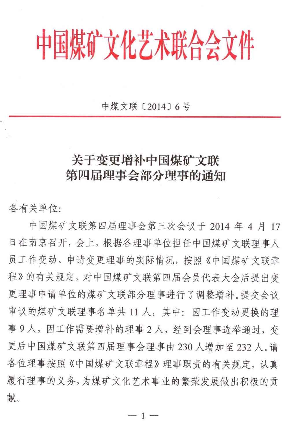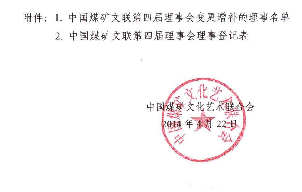 關于變更增補中國煤礦文聯第四屆理事會部分理事的通知