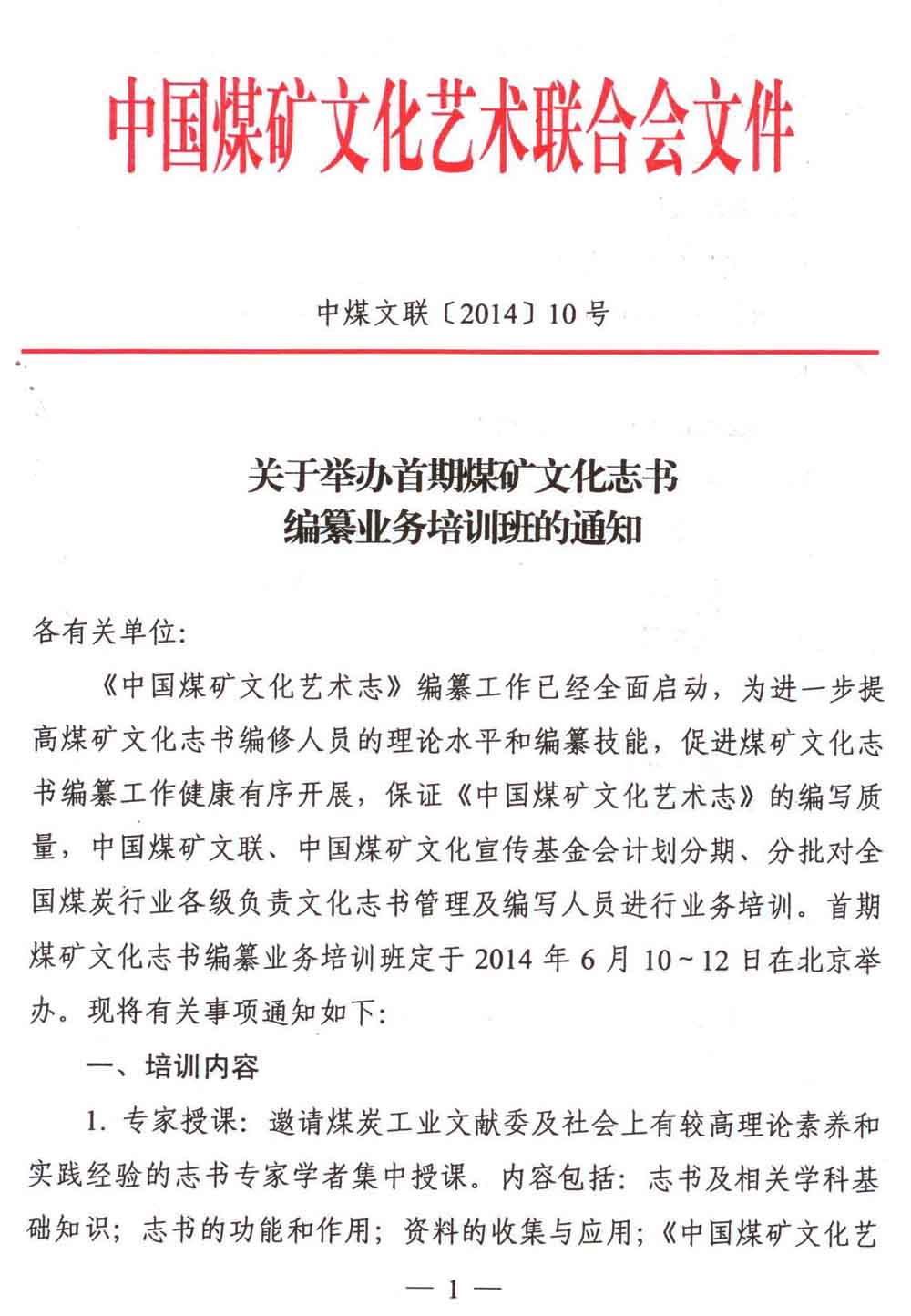關于舉辦首期煤礦文化志書編纂業務培訓班的通知