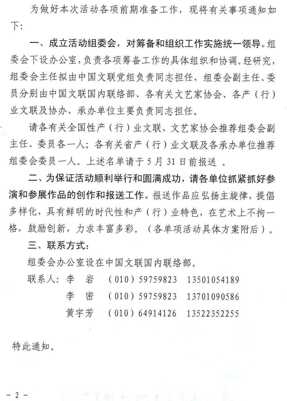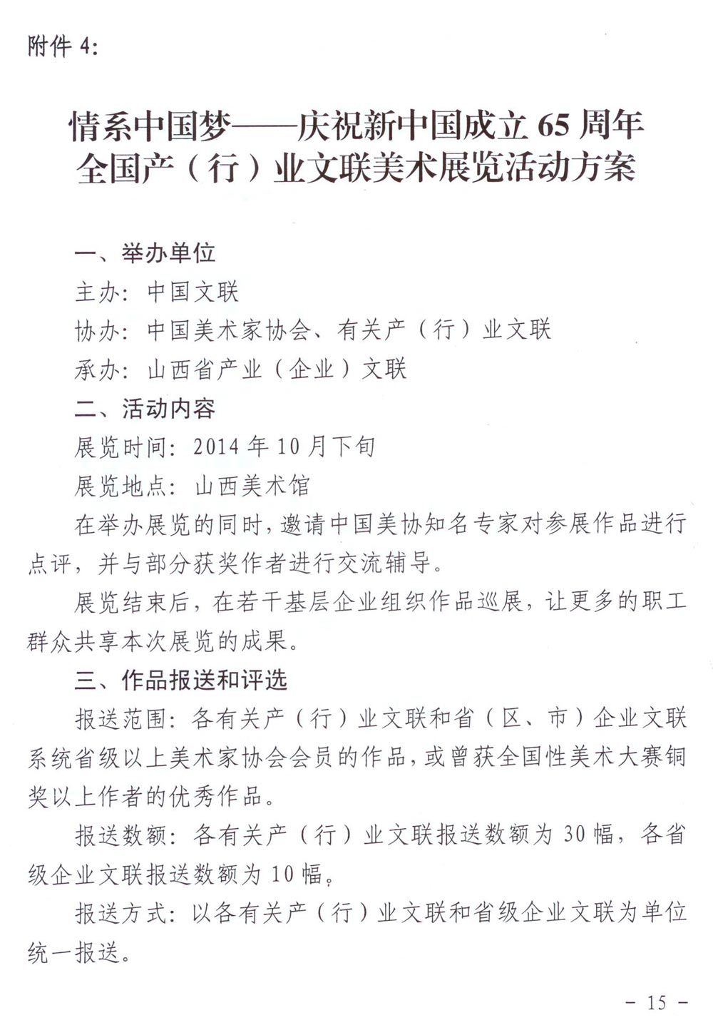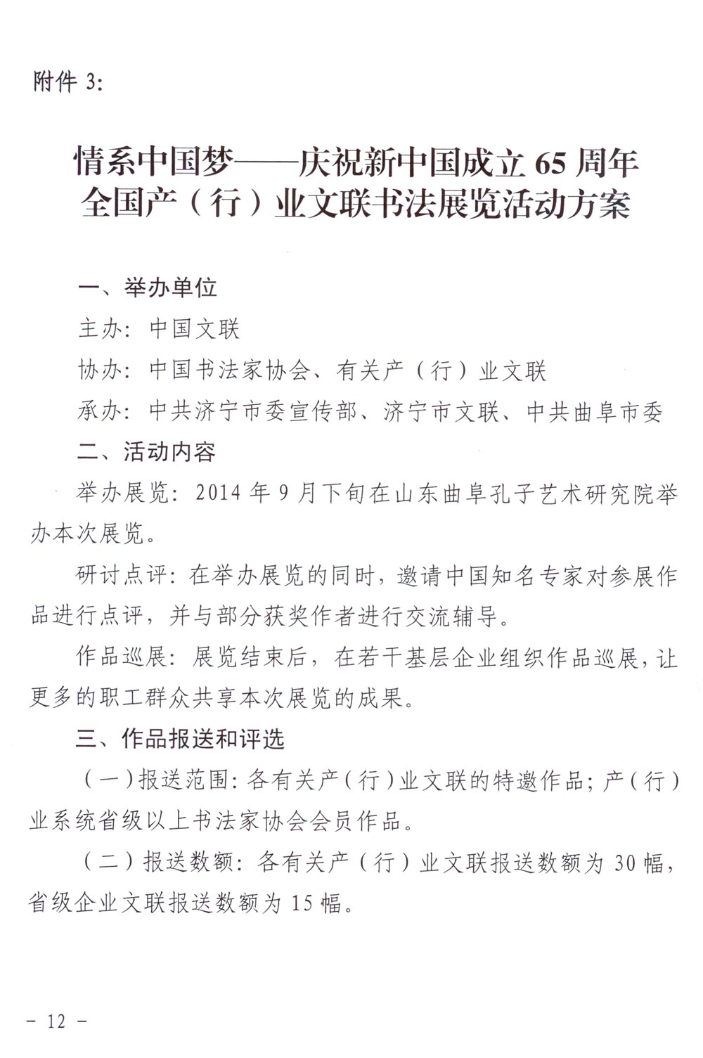 中國文聯《關于舉辦“情系中國夢——慶祝新中國成立65周年系列展演活動”的通知》