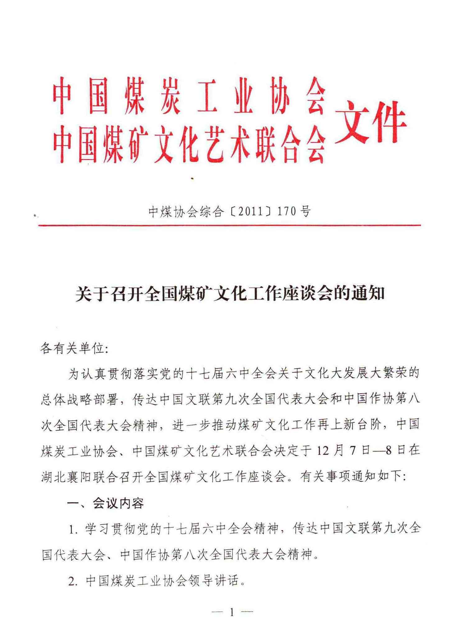 關于召開全國煤礦文化工作座談會的通知