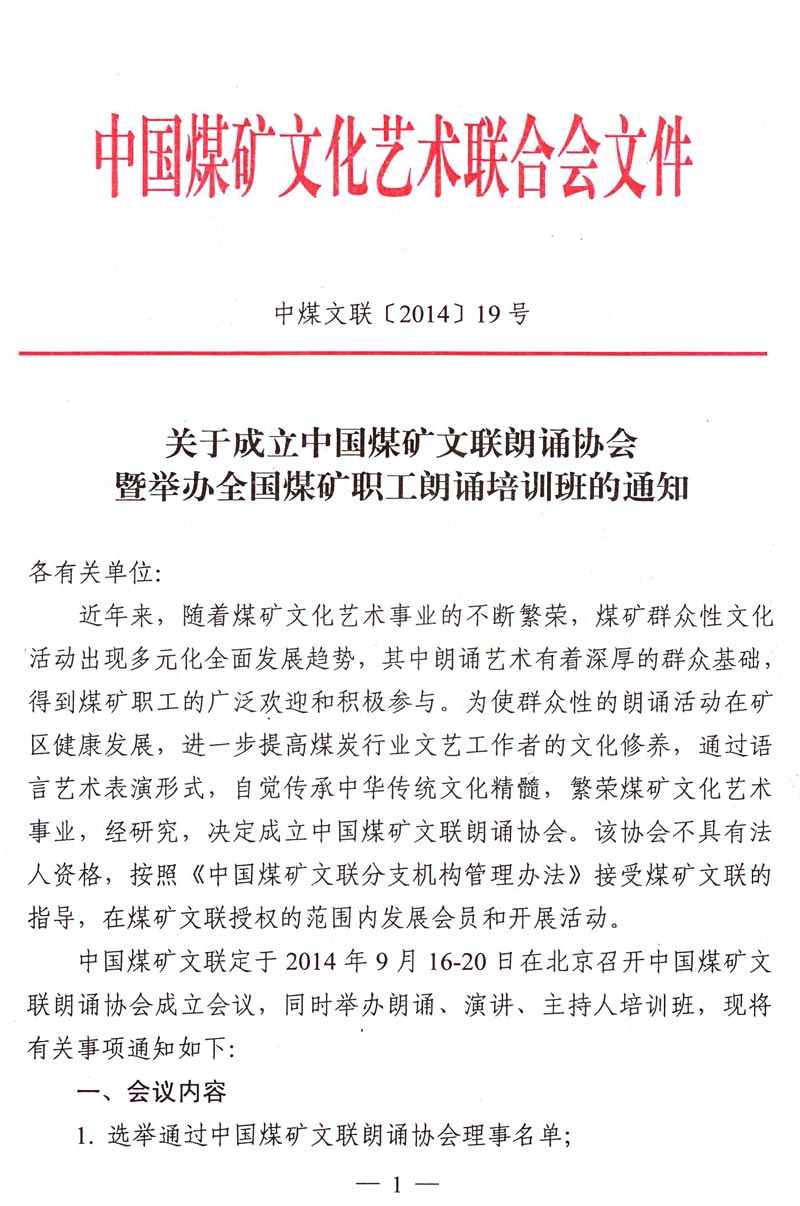 關于成立中國煤礦文聯朗誦協會暨舉辦全國煤礦職工朗誦培訓班的通知
