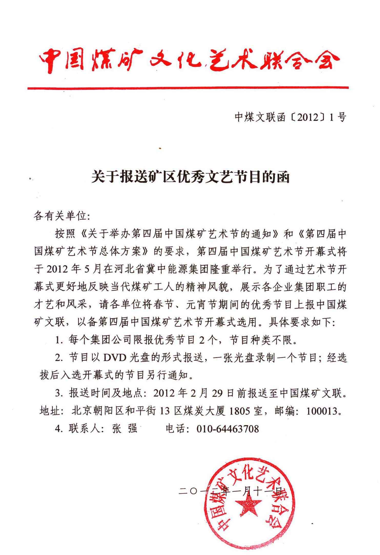 關(guān)于報(bào)送礦區(qū)優(yōu)秀文藝節(jié)目的函 來源:中國煤礦文聯(lián) 作者:夏周 時(shí)間:2012-01-17 【字體:小 大】 分享到: 【打印正文】