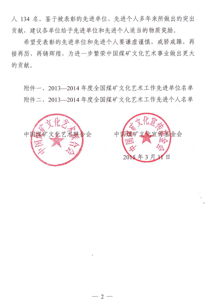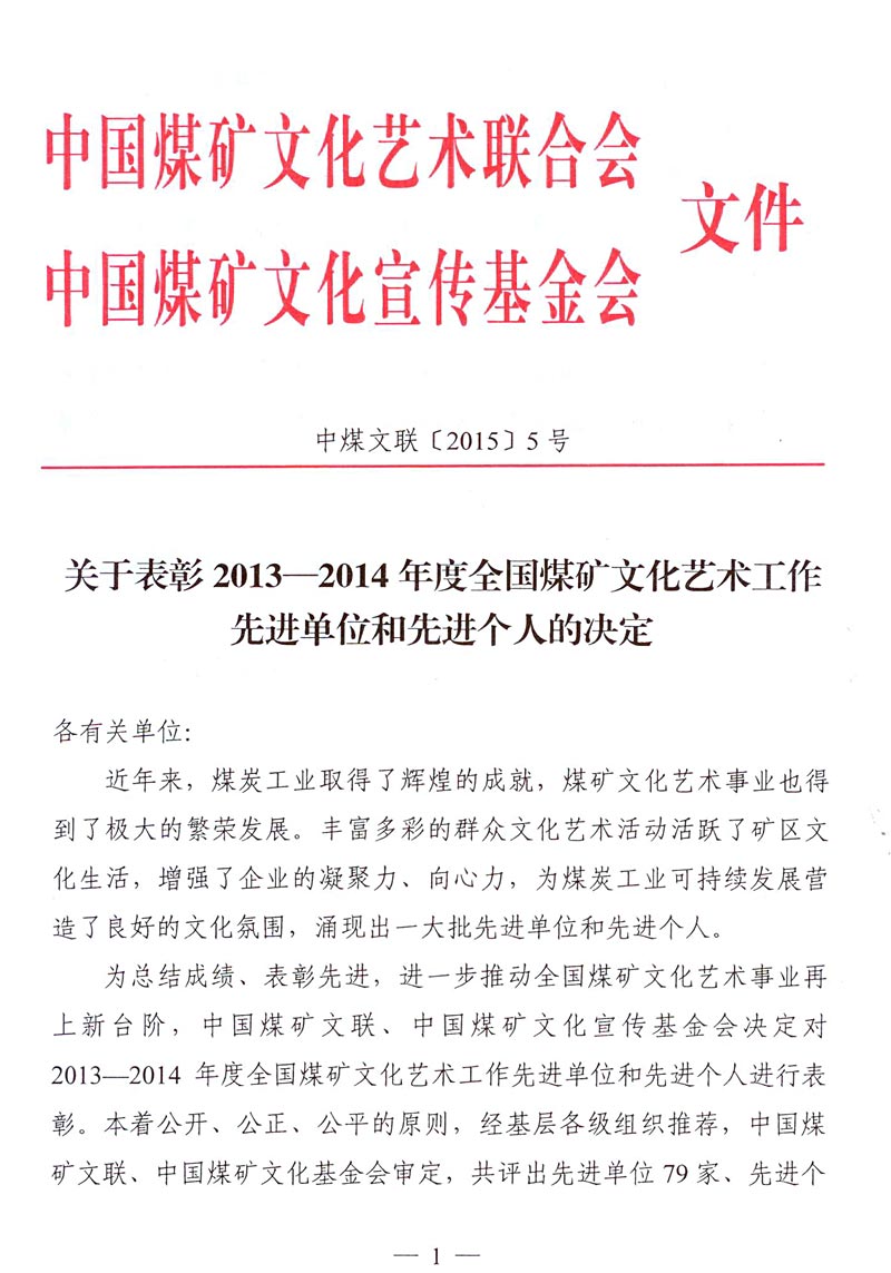 關于表彰2013—2014年度全國煤礦文化藝術工作先進單位和先進個人的決定 來源: 作者: 時間:2015-03-19 【字體:小 大】 附件一:2013—2014年度全國煤礦文化藝術工作先進單位名單 附件二:2013—2014年度全國煤礦文化藝術工作先進個人名單 智能標簽: 煤礦文化藝術 先進單位 先進個人 相關內容 分享到: 【打印正文】