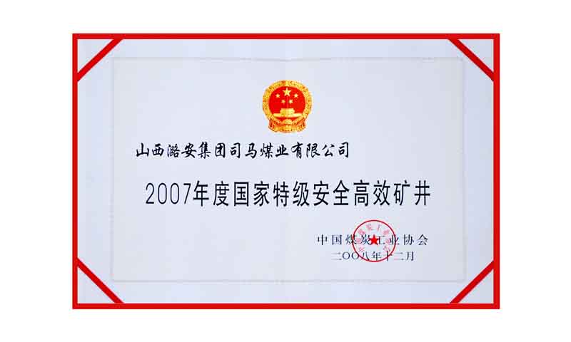 八年,司馬煤業榮獲“全國煤炭工業先進集體”、“全國煤炭系統文明煤礦”、“全國煤炭工業質量獎”、“全國‘安康杯’競賽優勝企業”、全國“特級安全高效礦井”、“中華環境友好煤炭企業”、全國“企業文化安全建設先進單位”、全國“模范職工之家”、山西省“五一勞動獎狀”等省部級以上榮譽三十多項。