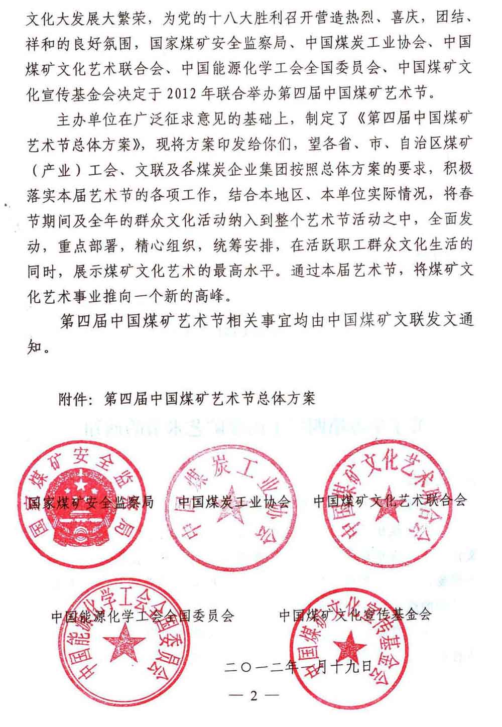 關(guān)于舉辦第四屆中國煤礦藝術(shù)節(jié)的通知 來源:中國煤礦文化網(wǎng) 作者: 時(shí)間:2012-01-30 【字體:小 大】 附:第四屆中國煤礦藝術(shù)節(jié)總體方案 分享到: 【打印正文】